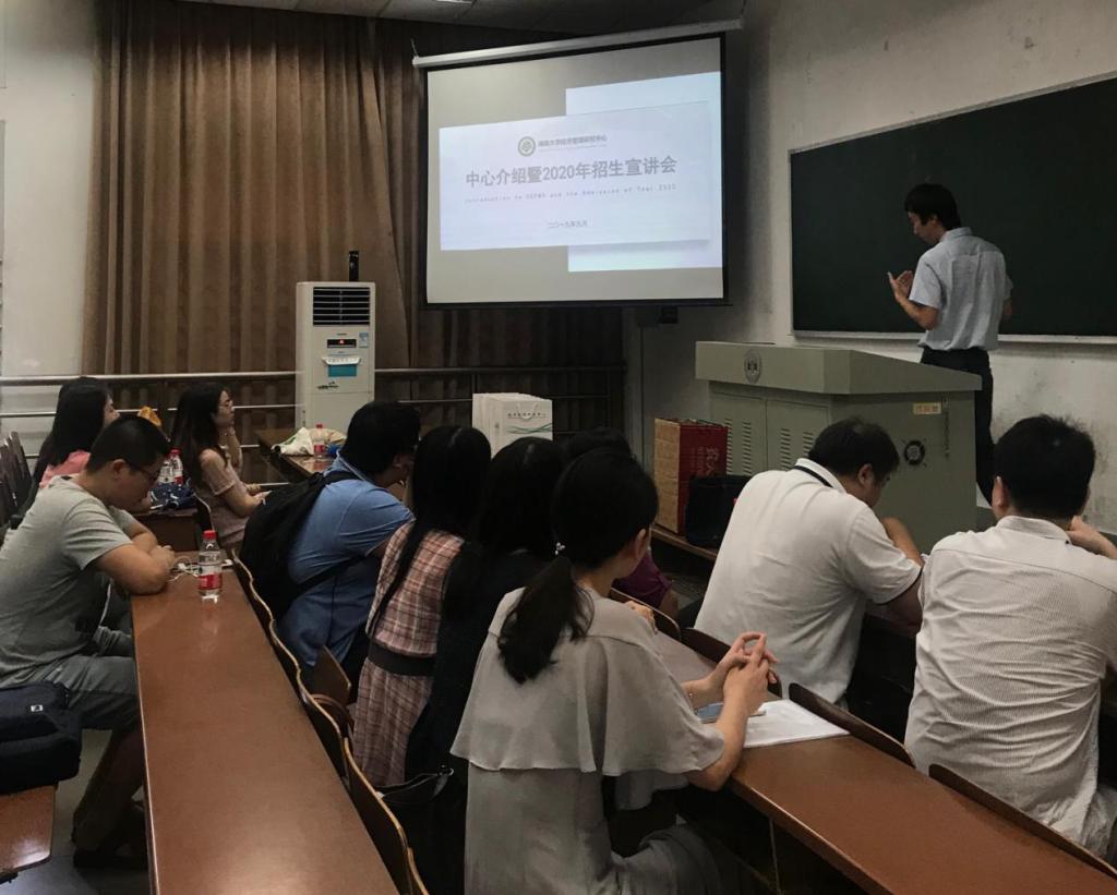 在复临舍208会议室举办了2020年硕博招生宣讲会。中心全职教师李志成、王思、高甡、刘骝以及行政人员、在读学生代表出席了宣讲会。此次活动吸引了对中心硕士、博士研究生项目感兴趣的本科学生参与。